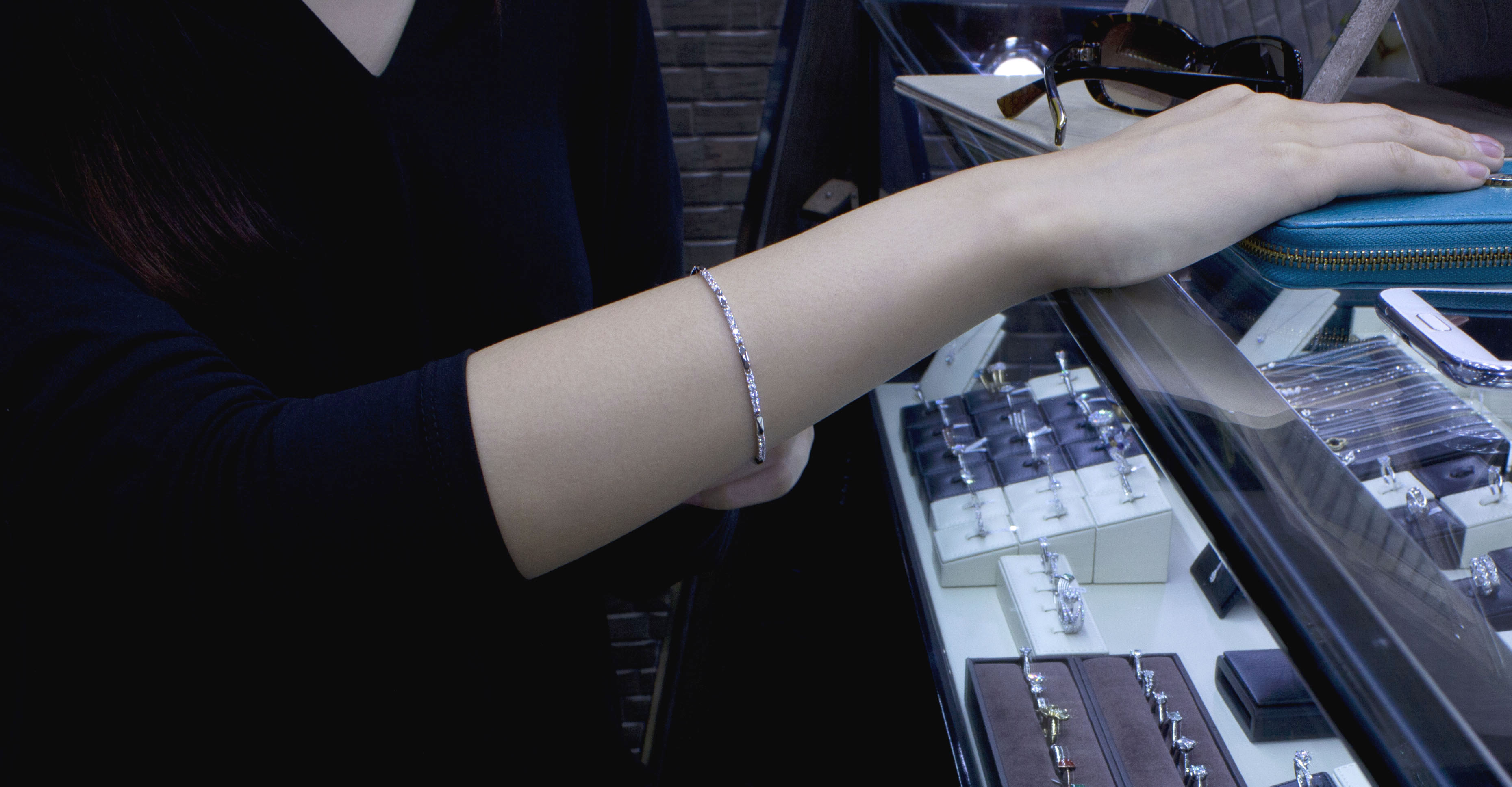 폭이 넓지 않은 팔찌입니다.