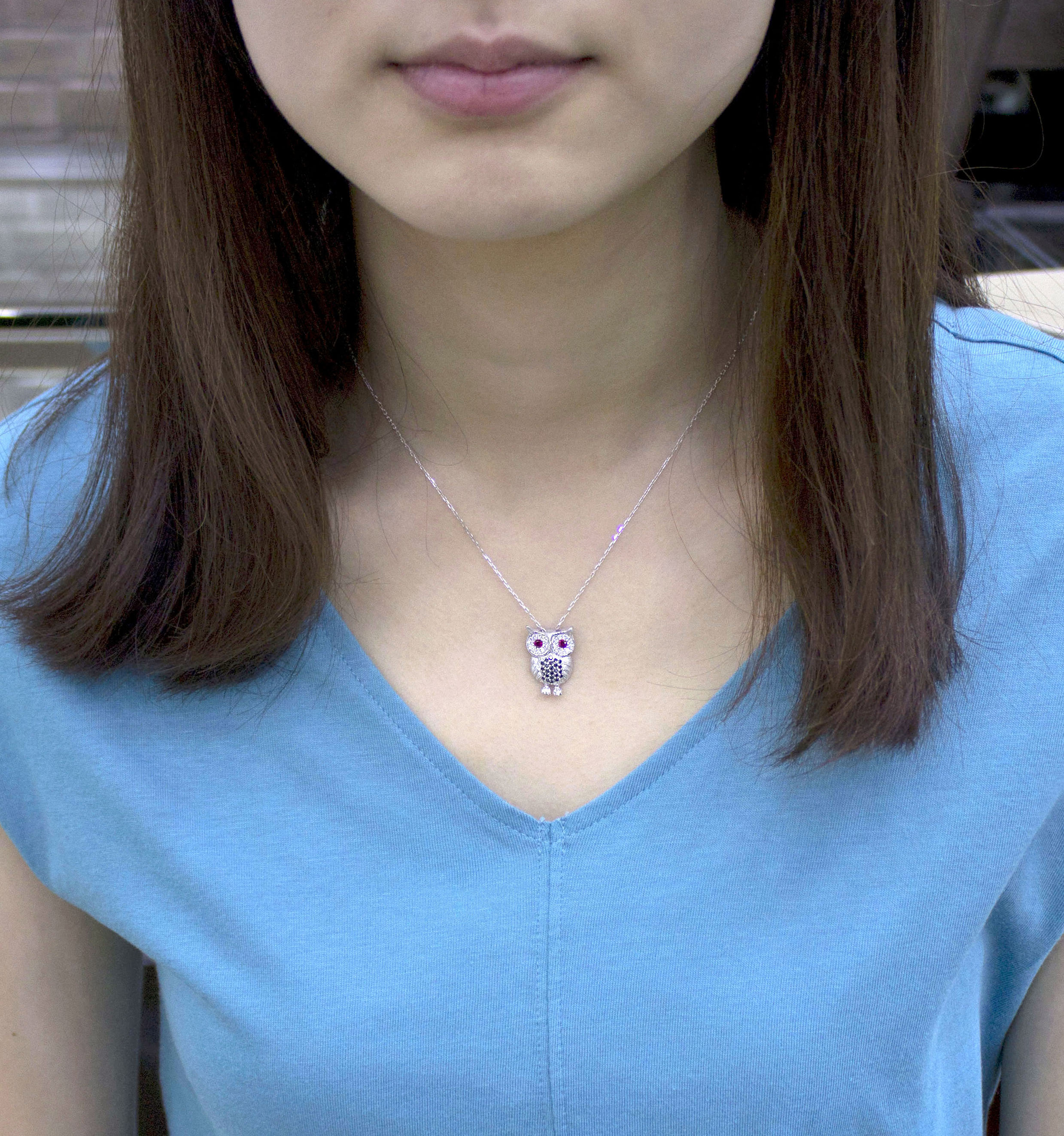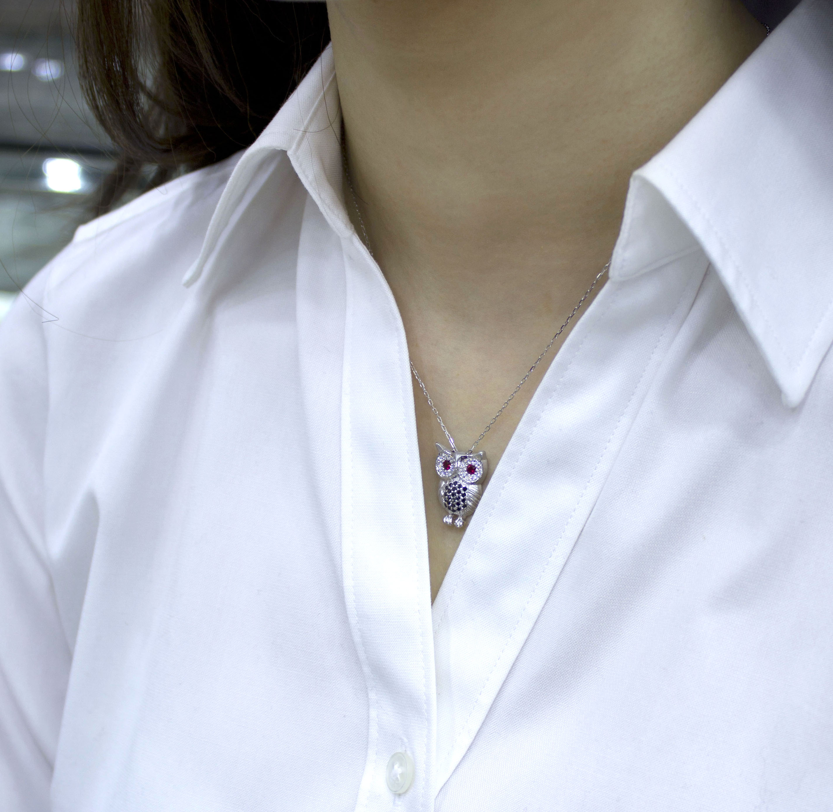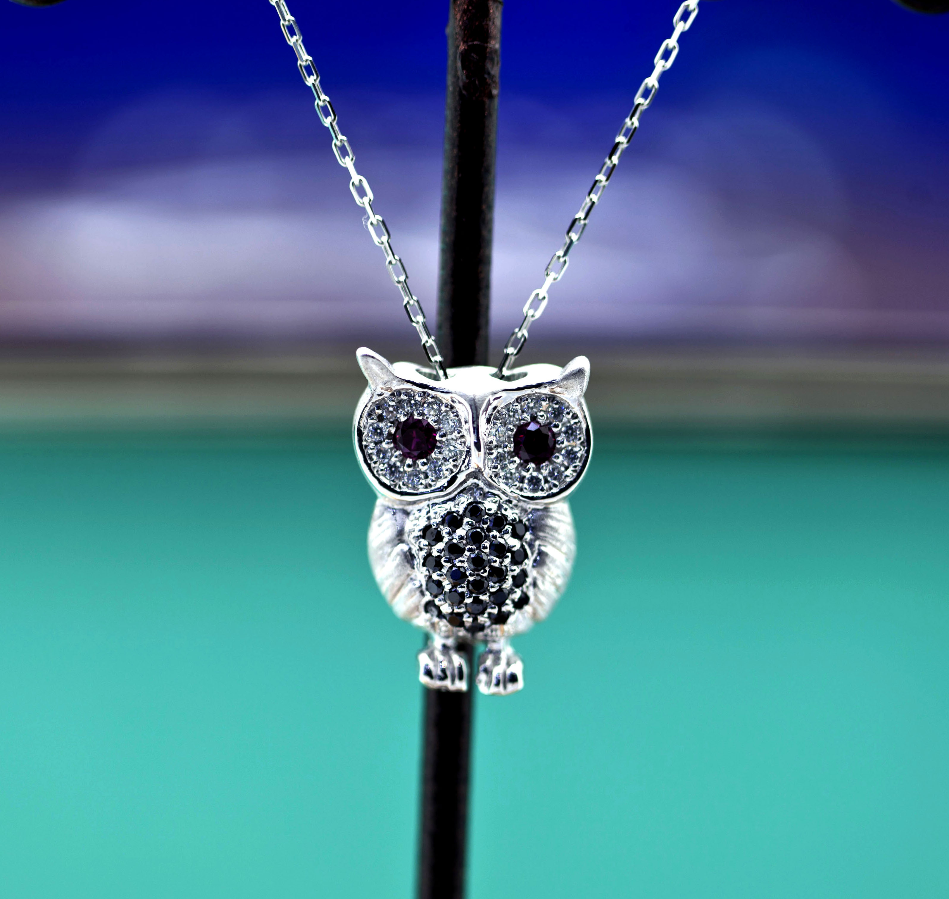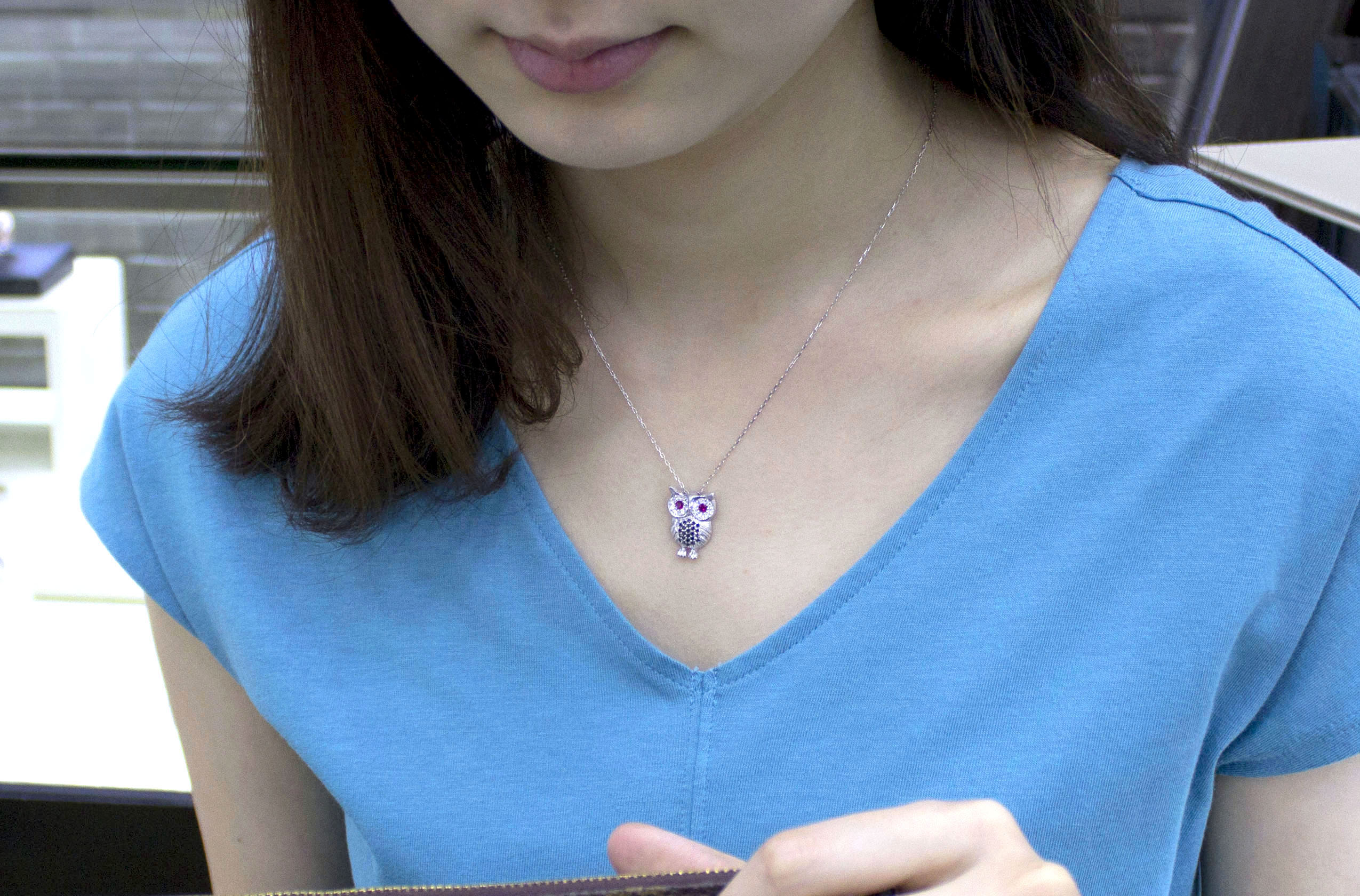 부엉이 목걸이는 여러가지 컬러의 스톤으로