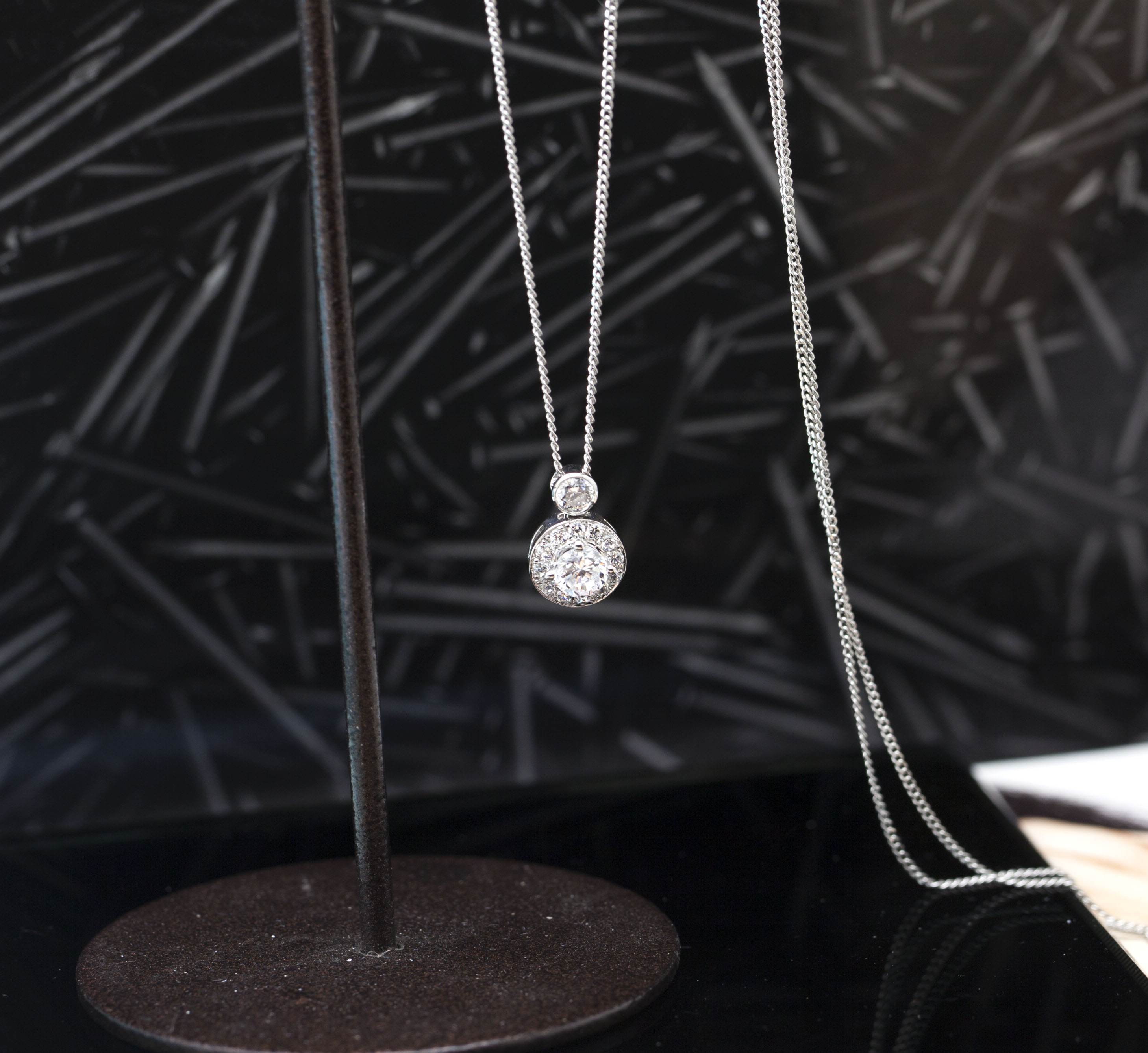K14 화이트골드에 시그니티 스톤을 세팅한 심플한 목걸이입니다.