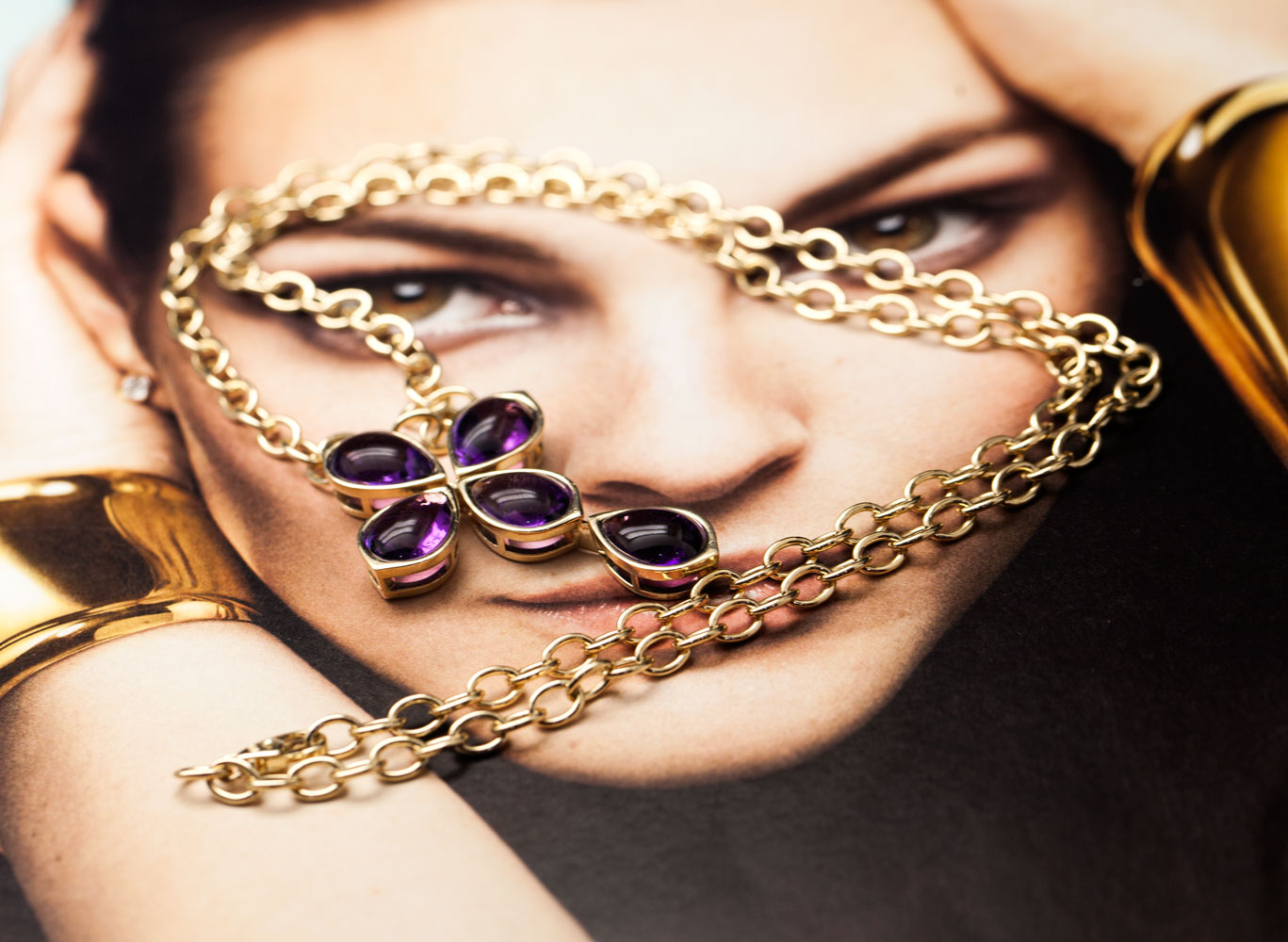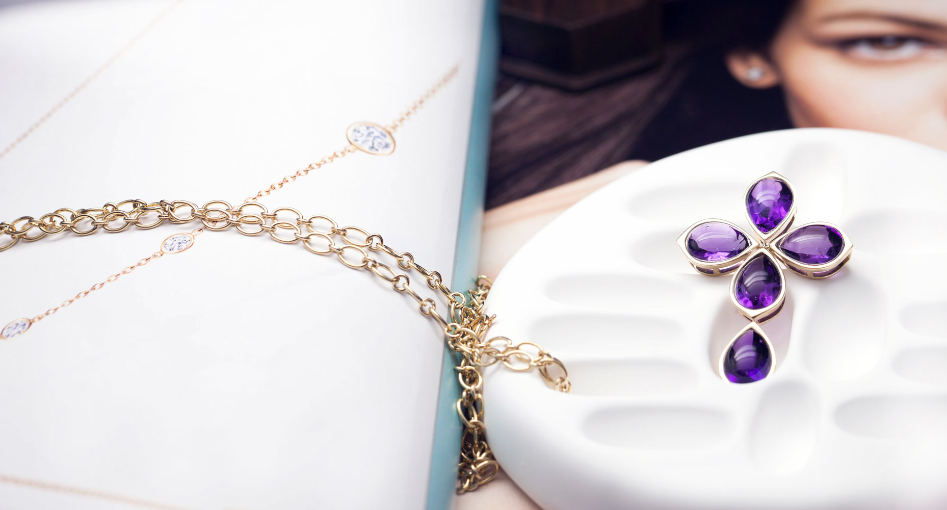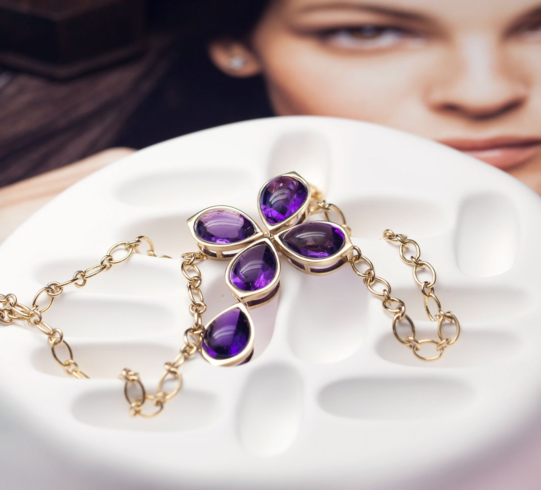 k14 옐로 골드와 합성 자수정을 이용하여