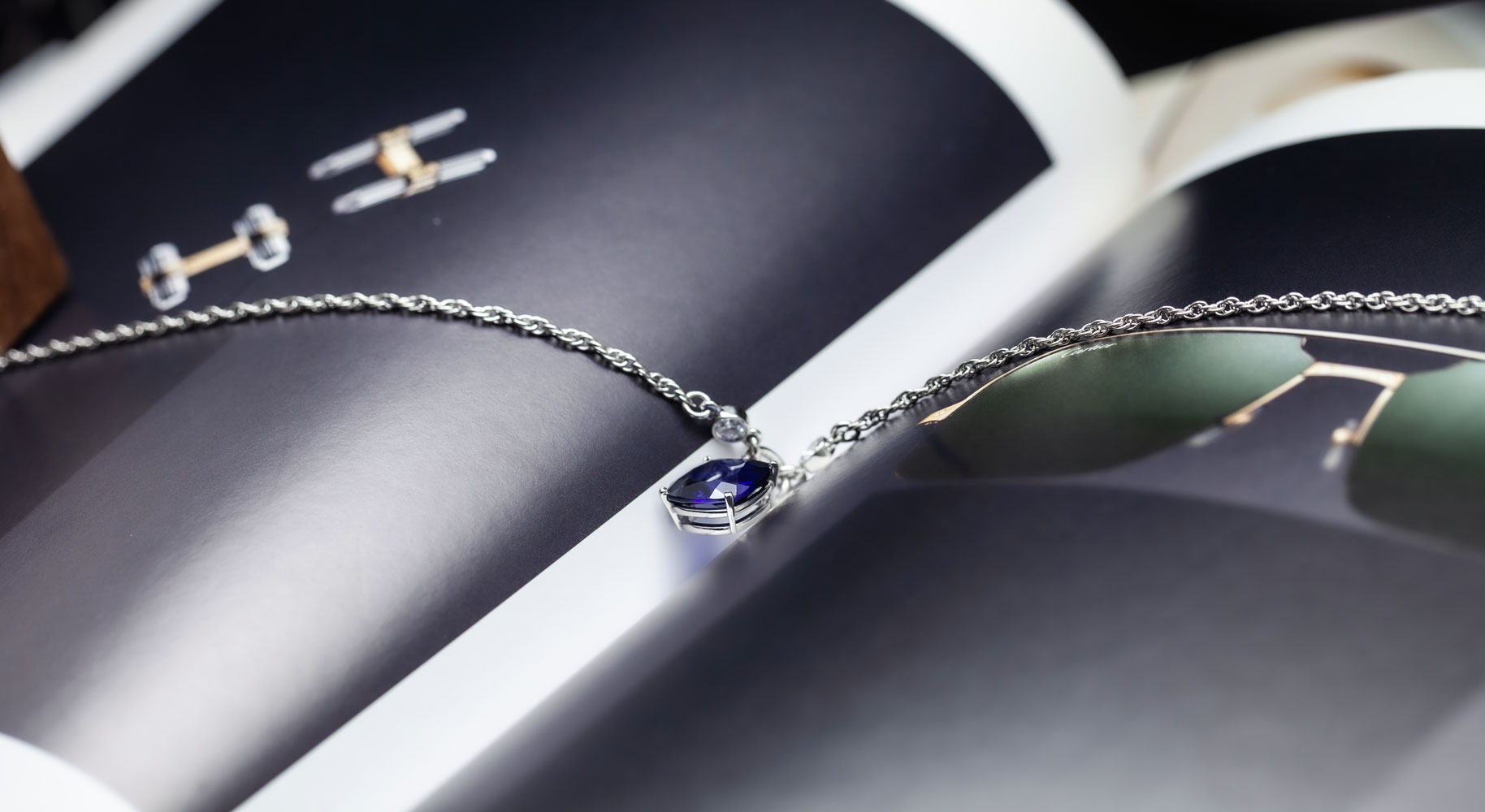 맑고 깊은 블루가 시선을 끄는 사파이어 목걸이입니다.