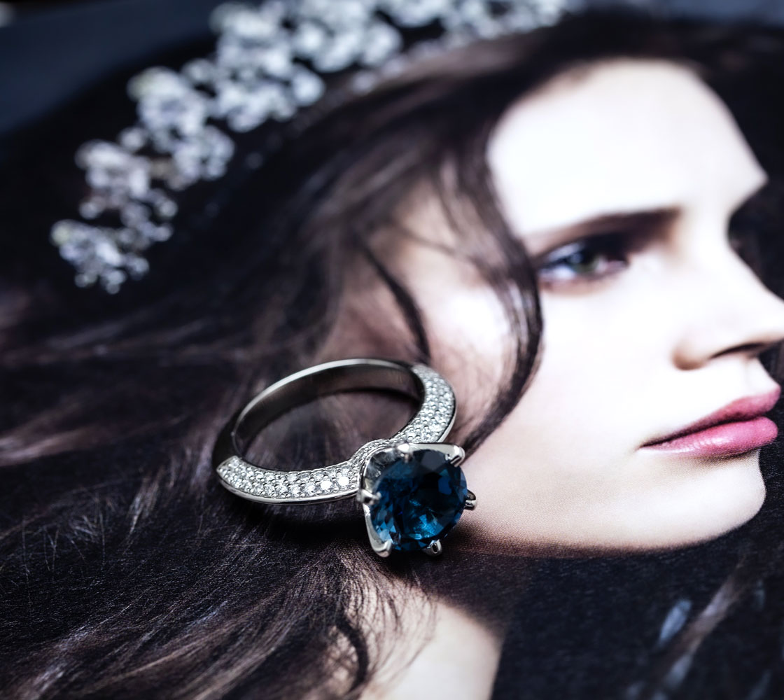 PT950 런던블루 토파즈 링