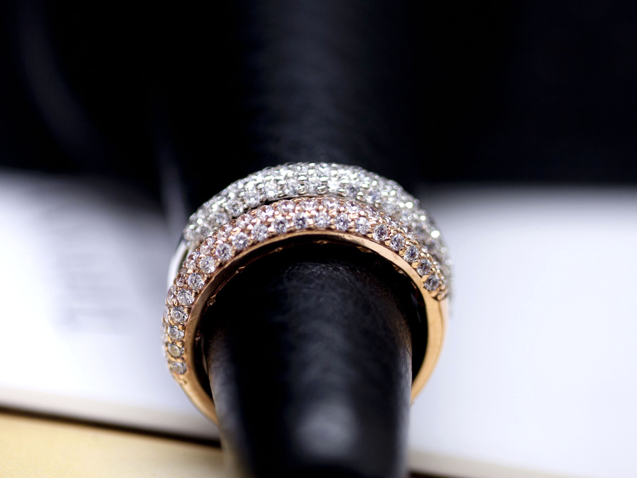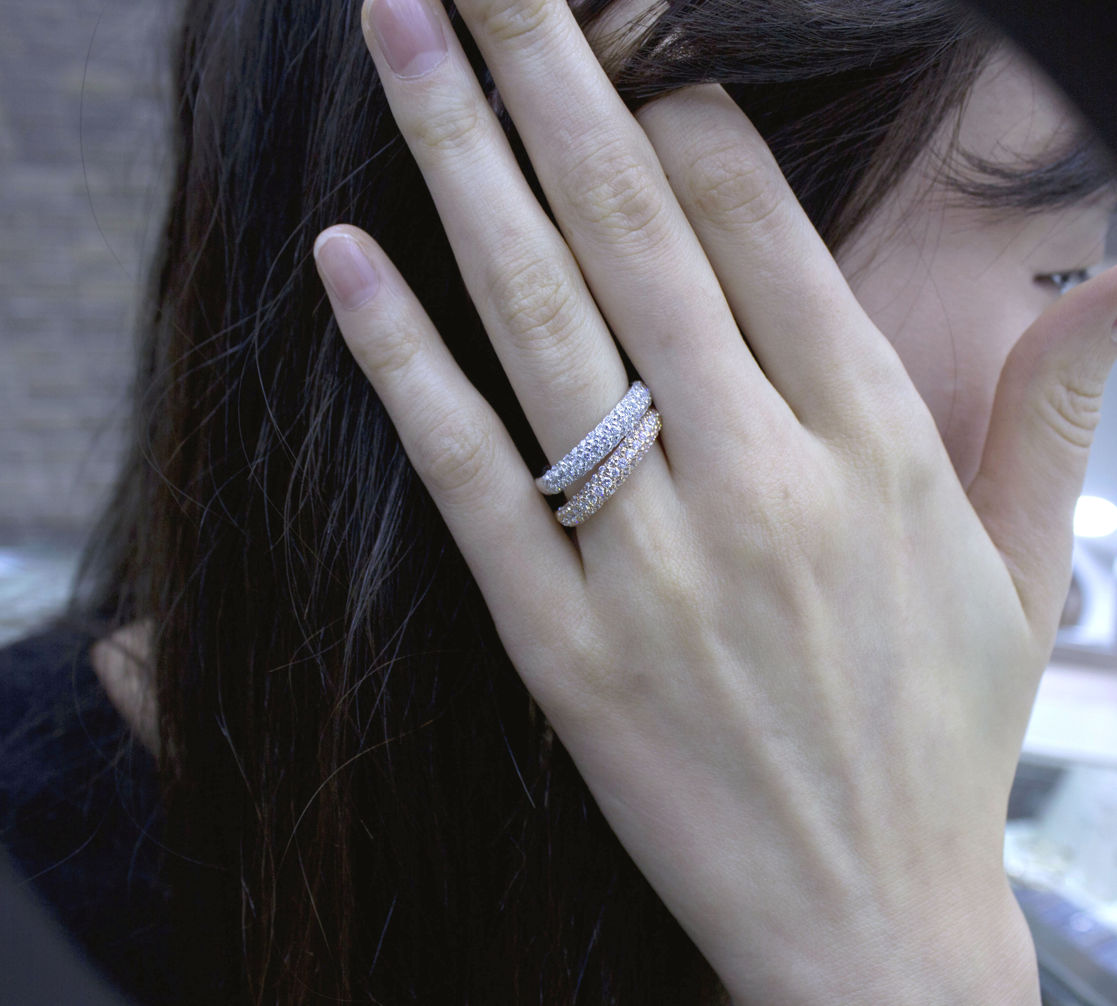 밴드 폭은 3.6mm 이며 약간 볼록한 형태로 스톤은 3 줄로 세팅되어 있습니다.