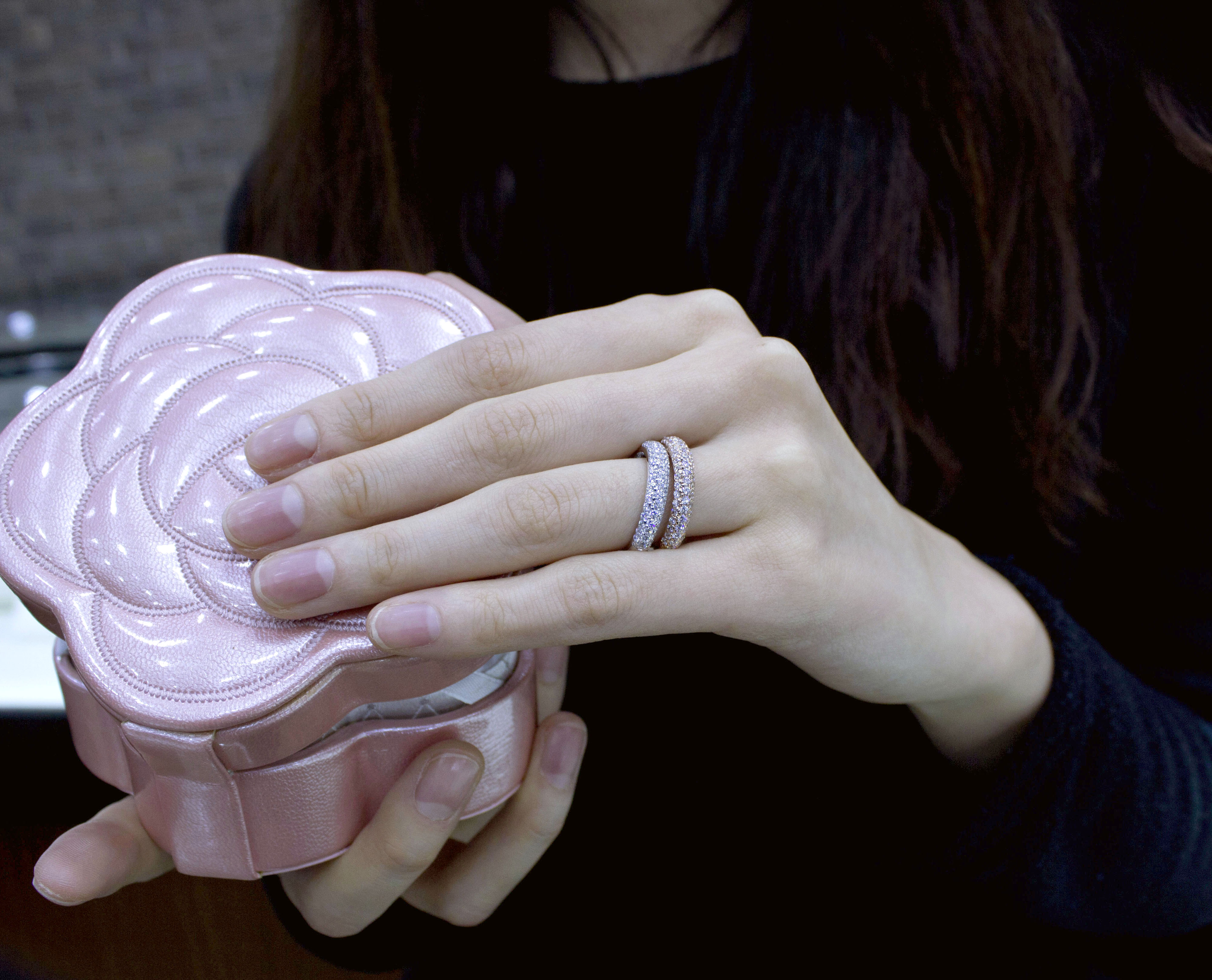 핑크와 화이트로 제작한 쌍 가락지 입니다.